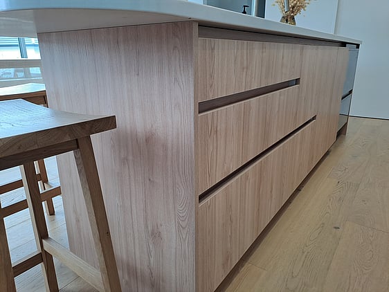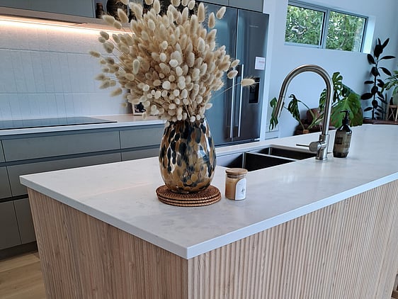 Melamine Cabinetry, Engineered Stone tops!